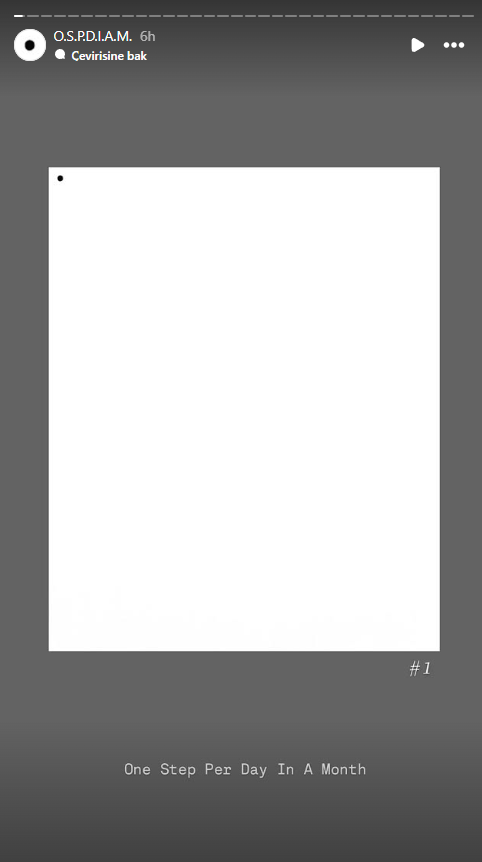 “Bir Ayda Her Gün Bir Adım”, çağdaş sanatta basitlik ve tekrarın derinlik olarak paketlendiği, ancak asıl amacın -görünürlük, pazarlanabilirlik ve şöhret- dile getirilmediği bir eğilimi örnekliyor.